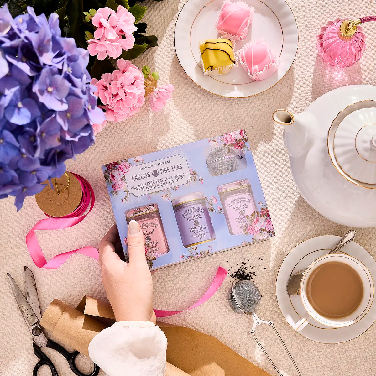 Beautifully boxed tea & infuser gift sets designed to delight. Each set pairs ethically sourced loose leaf tea with a single-serve ball infuser, ready to gift and made to impress.